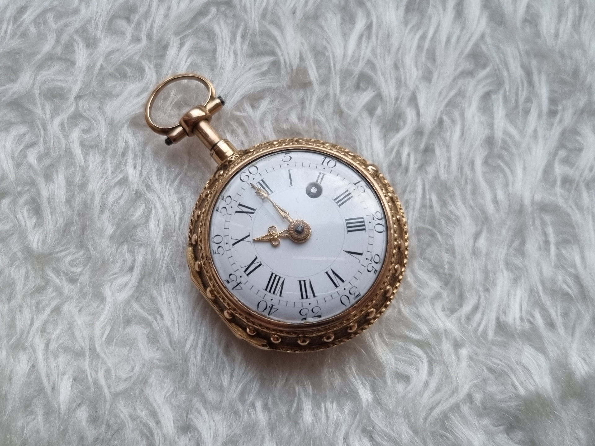 Vzácné - Zlaté 18k - Dámské - Kapesní hodinky - Bicí špindlovky - Tříbarevné zlato + Klíček